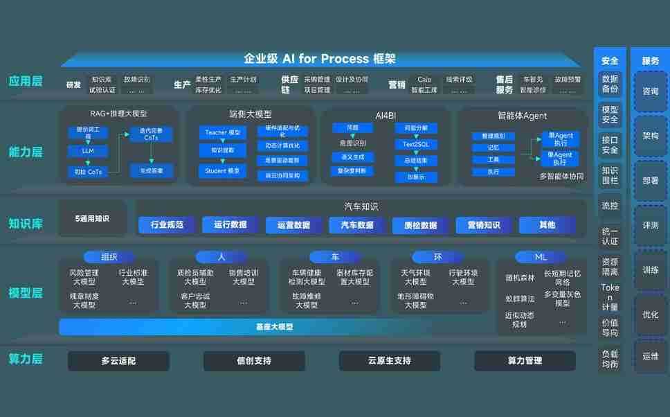 z6尊龙问学智车解决方案是一套基于AI技术的汽车行业智能化系统,,覆盖从底层算力到顶层AI应用的全栈方案。。方案由算力层、、、、模型层和应用层组成:算力层,,,,方案支持多种一体机配置,,,具备云端灵活部署、、多云适配以及动态优化计算资源的能力;模型层,,z6尊龙问学平台版提供了企业级AI应用一站式构建与管理平台,,支持基于后训练强化技术的汽车企业专属模型的训练、、评测和运营;应用层,,z6尊龙问学DeepSeek版提供包括超级员工、、智能招采、、、、智能营销、、、、智能客服、、AI for BI等一系列解决方案,,,可助力汽车行业实现数字化转型,,,,让管理更智能、、、响应更敏捷。。。。